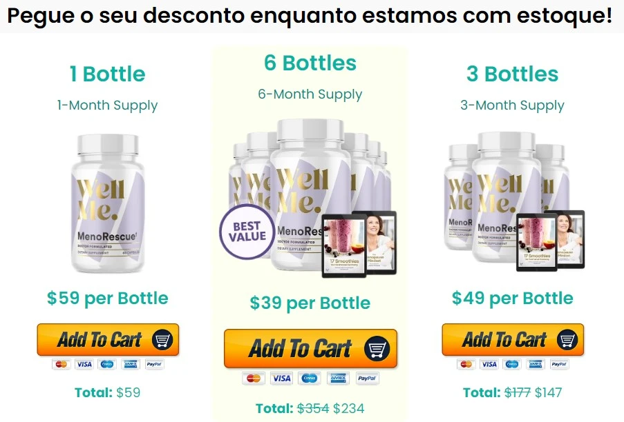 Inclua textos para a quantidade de potes, duração em meses, a imagem, o preço, uma imagem de botão e o valor total: